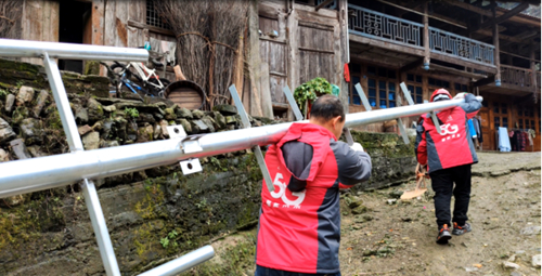 圖2:無線網(wǎng)絡(luò)維護(hù)人員搬運(yùn)基站設(shè)備進(jìn)村,加大覆蓋率,優(yōu)化無線網(wǎng)絡(luò)信號(hào)。