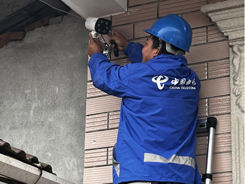 圖3:裝維工程師安裝“天翼看家”,為客戶看家護(hù)院送平安。