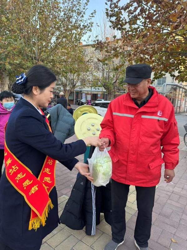 在送白菜的過程中,愛心大使不僅僅是簡單地完成物資傳遞,更是耐心地與老人們聊天,詢問他們的身體狀況和生活情況,叮囑他們要注意保暖,保重身體。