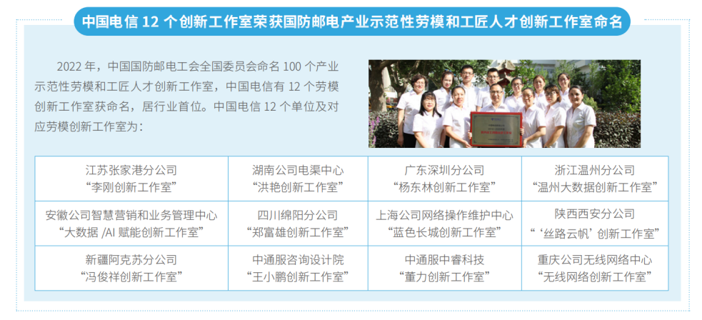 中國(guó)電信堅(jiān)持科技是第一生產(chǎn)力、人才是第一資源、創(chuàng)新是第一動(dòng)力。深入實(shí)施新時(shí)代“人才強(qiáng)企”工程,在全集團(tuán)范圍內(nèi)召開(kāi)科技人才工作會(huì)議,發(fā)布“十四五”科技人才發(fā)展規(guī)劃綱要,制定并落實(shí)科技人才工作10個(gè)方面27項(xiàng)重點(diǎn)舉措,打造中國(guó)電信戰(zhàn)略科學(xué)家、科技領(lǐng)軍人才和創(chuàng)新團(tuán)隊(duì)、卓越工程師、青年科技人才四支科技人才隊(duì)伍,持續(xù)深化人才發(fā)展體制機(jī)制改革,推廣人才云、人才工作站、人才特區(qū)等機(jī)制,進(jìn)一步激發(fā)隊(duì)伍活力。