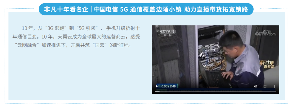 中國(guó)電信緊緊圍繞迎接黨的二十大和學(xué)習(xí)宣傳貫徹黨的二十大精神這條主線,統(tǒng)籌策劃參 與中央主流媒體迎接黨的二十大專(zhuān)題報(bào)道,央視財(cái)經(jīng)“非凡十年看名企”播 出中國(guó)電信篇,央視國(guó)際“新時(shí)代的中國(guó)”播出中國(guó)電信福建漁村5G篇, 央視紀(jì)錄片《雄安 雄安》重點(diǎn)宣傳中國(guó)電信“5G+云網(wǎng)融合”織就云上新城 的具體實(shí)踐。國(guó)務(wù)院國(guó)資委網(wǎng)站專(zhuān)欄刊發(fā)《中國(guó)電信: 牢記囑托 提供高質(zhì)量信息服務(wù) 讓人民群眾暢享美好數(shù)字新生活》,專(zhuān)題策劃“奮進(jìn)新征程  央企 這十年”宣傳,塑造了中國(guó)電信建設(shè)網(wǎng)絡(luò)強(qiáng)國(guó)和數(shù)字中國(guó)、維護(hù)網(wǎng)信安全的 主力軍形象。聚焦科技創(chuàng)新三年行動(dòng)計(jì)劃, 開(kāi)展“科技型企業(yè)”主題宣傳, 黨組書(shū)記、董事長(zhǎng)柯瑞文在《國(guó)資報(bào)告》發(fā)表署名文章《加快建設(shè)科技型企業(yè)》。聯(lián)合國(guó)務(wù)院國(guó)資委、人民日?qǐng)?bào)和中國(guó)新聞網(wǎng)策劃“我們這十年@坐標(biāo) 中國(guó)”“中國(guó)速度· 神機(jī)妙算”。中國(guó)電信在國(guó)務(wù)院國(guó)資委新聞中心公布的 2022年度“中國(guó)企業(yè)新媒體指數(shù)榜”和“中央企業(yè)新媒體指數(shù)榜”均位列第 一。中國(guó)電信官方微博獲中央網(wǎng)信辦2022年“走好網(wǎng)上群眾路線百個(gè)成績(jī)突 出賬號(hào)”,新聞作品在第五屆中央企業(yè)優(yōu)秀故事創(chuàng)作展示活動(dòng)中獲得優(yōu)秀組織 獎(jiǎng)和10個(gè)作品獎(jiǎng)。在第九屆“國(guó)企好新聞”評(píng)選中,獲得5個(gè)作品獎(jiǎng)、1個(gè)新 聞創(chuàng)客提名獎(jiǎng)。