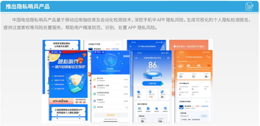中國電信積極落實《中華人民共和國數(shù)據(jù)安全法》《中華人民共和國個人信息保護法》等法律法規(guī)要求,完善《中國電信用戶個人信息保護管理辦法》,保障用戶個人信息處理活動中的安全和權(quán)益,深入推動APP侵害用戶權(quán)益治理工作,積極探索分場景用戶個人信息保護能力,建立企業(yè)重要數(shù)據(jù)和核心數(shù)據(jù)目錄,提升風險自主發(fā)現(xiàn)能力,數(shù)據(jù)安全風險自發(fā)現(xiàn)率達到99.9%。積極開展個人信息保護行動,研發(fā)個人信息保護相關(guān)功能產(chǎn)品,切實做好用戶個人信息保護服務。