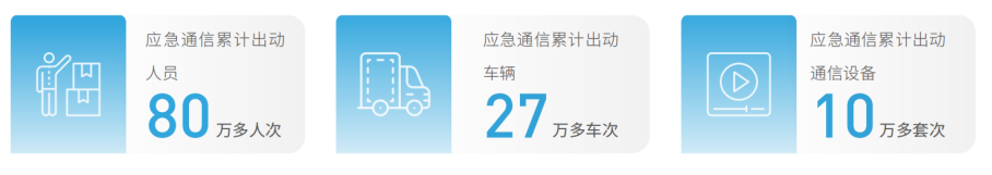 中國電信忠實履行保障通信安全暢通的使命,全力抗擊地震、臺風、洪澇、山體滑坡等自然災害,保障重大活 動。完成瀘定6.8級抗震救災通信保障。完成浙江、福建、遼寧、廣東、廣西、甘肅等省份防汛防臺救災保障。聚焦重點區(qū)域、協(xié)同聯(lián)動全網(wǎng),統(tǒng)籌線上線下,圓滿完成北京冬奧會、中國共產(chǎn)黨第二十次全國代表大會等11項重大 活動通信保障工作。2022年,應急通信累計出動人員80萬多人次、車輛27萬多車次、通信設備10萬多套次。