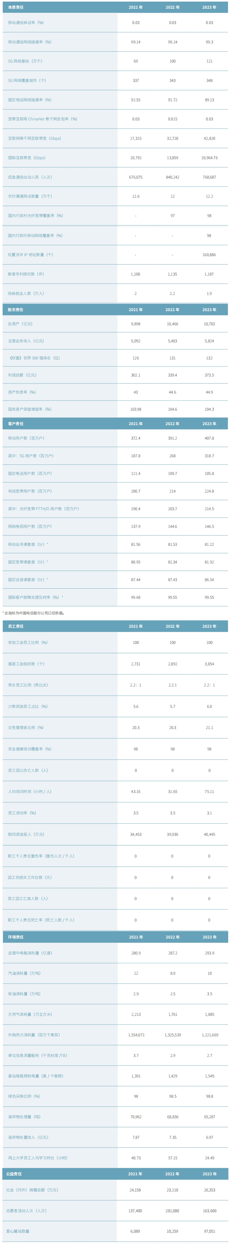 深入推進(jìn)社會(huì)責(zé)任管理:中國電信將進(jìn)一步完善社會(huì)責(zé)任工作保障機(jī)制,聚焦社會(huì)責(zé)任組織建設(shè)、社會(huì)責(zé)任能力體系、社會(huì)責(zé)任溝通等方面,持續(xù)提升社會(huì)責(zé)任管理水平,推動(dòng)企業(yè)在新時(shí)代體現(xiàn)新?lián)?dāng)、展現(xiàn)新作為。